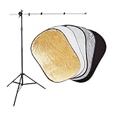 CowboyStudio Multi Disc Kit, with 22 x 36 Inch 5-in-1 Multi Disc Portable Reflector, Compact Holder and Light Stand