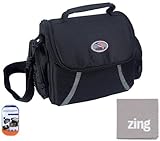 This Medium Sized Deluxe Video and Camera bag is the perfect compliment to hold all of your equipment. It features a shock proof nylon material and is water resistant. It has 1 removable divider, 2 outer, zippered compartments with 1 webbed pocket, removable shoulder strap and a handle grip. It has a limited lifetime warranty.