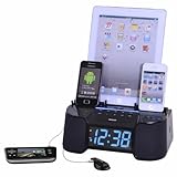 ORGANIZE/Charge any 6 portable media devices including phones, simultaneously, in one location. CHARGE/SCD (Smart Current Detection) adjusts the current flow to ensure proper charging to each device. PLAY/Display and listen to one device on Dock's speaker system while charging. UNIVERSAL/Compatible with any smart device. SPEAKER SYSTEM/Plays a device through its speaker while charging. CLOCK RADIO/Wake up to FM stereo alarm clock radio.