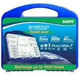 eneloop NEW Power Pack, 2000mAh Typical, 1900mAh Minimum, 1500 cycle, 8AA, 2AAA, 2 "C" and 2 "D" Spacers, 4 Position Charger, and Storage Case