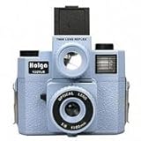 This twin lens reflex style camera is the latest addition to the world-famous Holga line of plastic cameras. Designed with a retro style, top-down viewfinder, the Holga TRL's featuresinclude aperture settings of f/8 and f/11, shutter speeds ofapproximately 1/100 sec. and bulb mode, a built-in flash with rotating color wheel, 1/4-20 thread tripod mount, internal masks for creatingsharp borders, and the Holga's legendary light leaks and low-fi buthighly artistic imagery. Uses 2-AA batteries for flash operation only, not included. Uses 120 film.