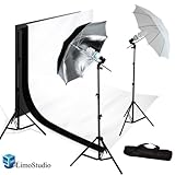 Limostudio Photography Photo Studio Lighting Kit Set & 10X10 White Black Double Muslin Backdrop Background Carrying Case_AGG720