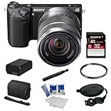 Sony NEX-5RK/B 16.1 MP Compact Interchangeable Lens Digital Camera with 18-55mm Lens and 3-Inch LCD in Black + Sony 32GB Class 10 SD Card + Sony Camera Case + Replacement Battery Pack + Tiffen 49mm Filter + Accessory Kit